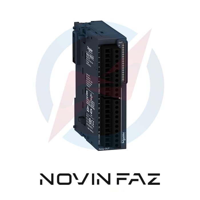 ماژول خروجی دیجیتال اشنایدر با کد فنی TM3DQ16R از سری ماژولهای Modicon TM3 بوده و برای پی ال سی های سری Modicon استفاده میشود. در این ماژول 16 رله خروجی تعبیه شده که با جریان 2 آمپر کار میکند. این قطعه مجهز به یک ترمینال بلاک پیچی است و قابلیت نصب بر روی دین ریل 35 میلی متری متقارن را دارد. ماژول دیجیتال خروجی TM3DQ16R با پی ال سی های مدیکن M221،M221book ،M241 و M251 سازگاری دارد و عملکرد آنها را بهبود میبخشد. این تجهیز دارای ترمینال فنری قابل حمل برای اتصال الکتریکی با تنظیم گام 5.08 میلی متری برای ورودی-خروجی هایش است. درجه حفاظت این تجهیز IP20 است. ابعاد این ماژول به ترتیب برابر با 23.6*70*90 است و 140 گرم وزن دارد. این محصول دارای گواهینامه CE است و طبق استانداردهای EN/IEC 61131-2 و EN/IEC 61010-2-201 ساخته شده است. طبق استاندارد IEC 60715 این ماژول بر روی دین ریل TH35-15 و TH35-7.5 و تابلو با پایه کیت ثابت نصب می شود. ماژول توسعه Modicon TM3 با مکانیسم مونتاژ در هم تنیده/قفل شده طراحی شده است. هنگام مونتاژ ماژولهای Modicon TM3 با پی ال سی، از یک کانکتور گسترش باس برای توزیع دادهها و منبع تغذیه استفاده میشود.